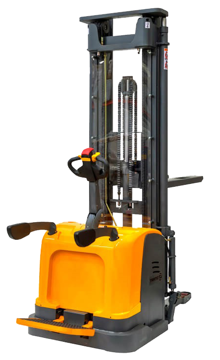 Наличие откидной платформы сводит к минимуму нагрузку на оператора, позволяя ему перемещаться на более длительные расстояния в сравнении с пешим ходом. Боковая поддержка повышает безопасность при движении самоходного штабелера.